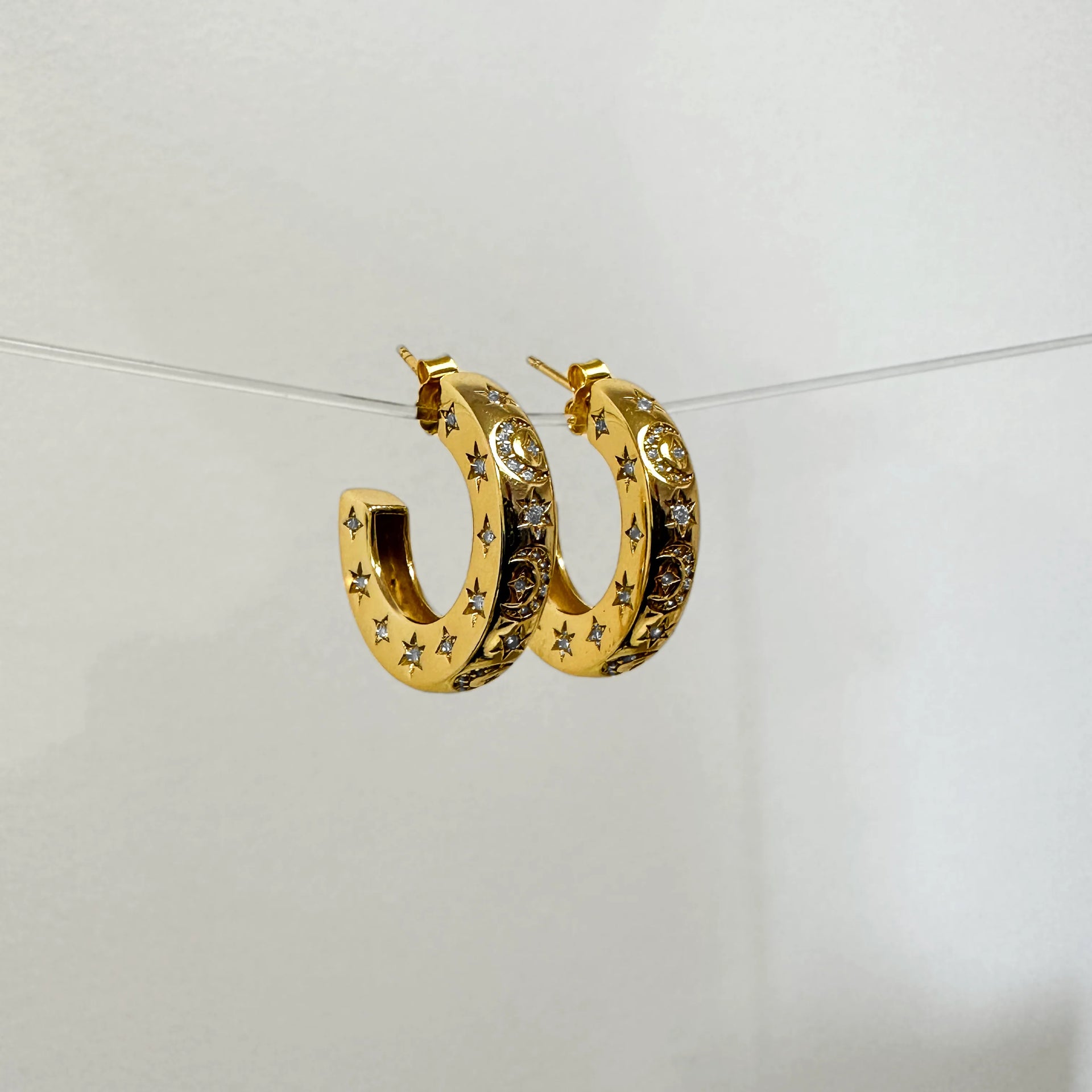PAIR The Celestial Hoops exude a dreamy, extravagant energy and are perfect for glamorous occasions. These earrings pair beautifully with evening gowns and elegant outfits, making them ideal for grand celebrations or special...